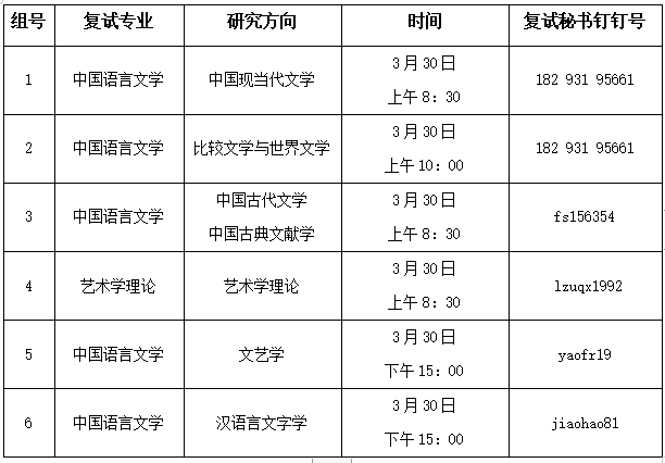 汉语国际教育专业学位面试分为:1.专业综合能力面试组;2.思想政治素质和品德考核与外语能力测试组。两个小组同时进行,考生需要分别加两个面试组的钉钉号。